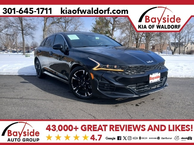 This Certified 2023 Kia K5 GT-Line Black on Black delivers head-turning style and performance with the peace of mind of Kias factory certification. With its turbocharged engine, sport-tuned handling, and sleek black exterior matched to a black interior, it offers responsive performance and a refined, athletic presence. Inside, enjoy heated and ventilated seats, a panoramic sunroof, wireless Apple CarPlay/Android Auto, and advanced safety tech like blind-spot monitoring and forward collision avoidance. Backed by a comprehensive inspection and extended warranty coverage, this certified K5 GT-Line blends sporty style, modern tech, and proven reliability all in a bold black-on-black package.