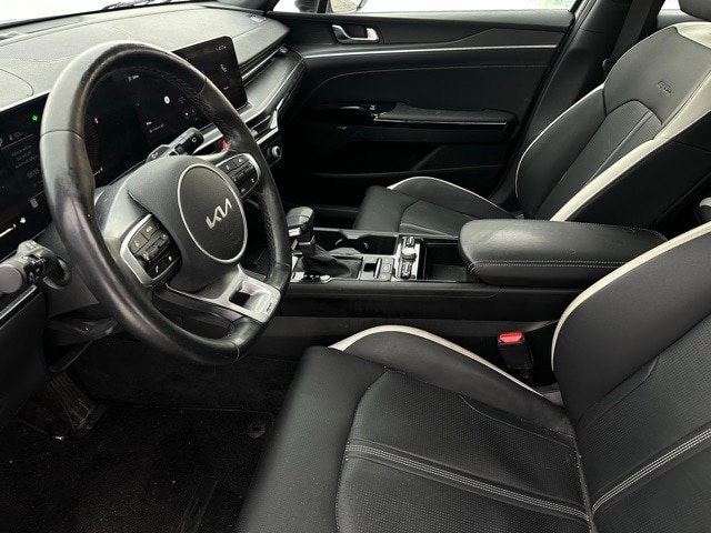 This Certified 2025 Kia K5 GT-Line in striking Steel Matte Gray delivers bold styling, sporty performance, and the confidence of Kias factory certification. Its turbocharged engine provides smooth, responsive driving, while the refined interior features heated front seats, modern infotainment with Apple CarPlay and Android Auto, and advanced safety technology. Backed by a comprehensive inspection and extended warranty coverage, this GT-Line stands out with aggressive looks, premium features, and worry-free ownership.