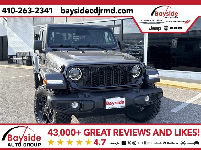 Bayside carries a full model lineup of Chrysler, Dodge, Jeep and RAM vehicles including the Jeep Grand Cherokee, Jeep Wrangler, Dodge Durango, Pacifica and RAM 1500. We invite you to shop around and compare our prices with other Chrysler, Dodge, Jeep and RAM dealerships in the Annapolis area. Let us know what you find, and let us give you our best price on the same model. We strive to earn your business and want you to be a Bayside Chrysler Dodge Jeep Ram customer for life! Visit us on the web at www.baysidecdjrmd.com. *Sale price includes all applicable rebates. Freight charge is not included. Taxes, tags and doc fee extra. Not all customers will qualify for all rebates. See dealer for details. Sale price includes all applicable rebates. Freight charge is not included. Taxes, tags and doc fee extra. Not all customers will qualify for all rebates. See dealer for details. Price includes: $1000 - 2026 National Stellantis Loyalty Bonus Cash . Exp. 03/02/2026 $500 - 2026 National 2026 First Responder Bonus Cash . Exp. 01/04/2027