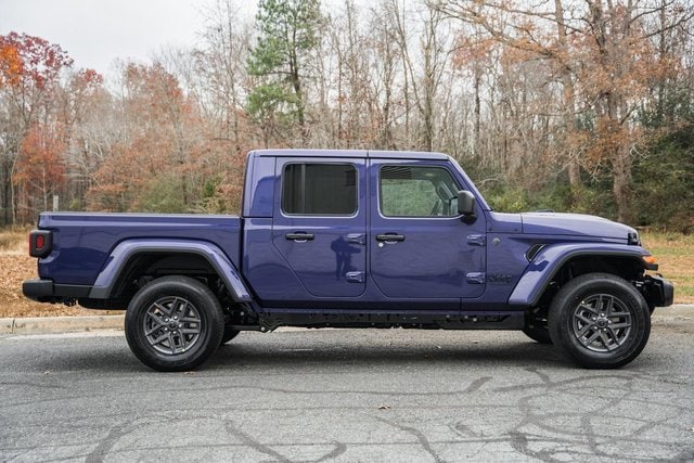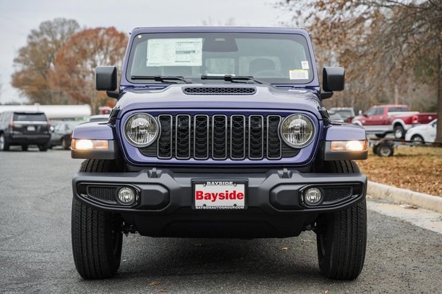 The 2026 Jeep Gladiator Sport S 4x4 combines rugged off-road capability with versatile utility, powered by a 3.6L V6 engine with Stop/Start and an 8-speed automatic transmission, featuring heavy-duty Dana 44 axles, Command-Trac part-time 4WD, and a 3.73 axle ratio. Safety and convenience are enhanced by ParkView rear camera, electronic trailer sway control, electronic stability and roll mitigation, selectable tire-fill alert, and advanced airbags throughout. Inside, the cabin offers Uconnect 5 with 12.3-inch touchscreen, SiriusXM 360L, Apple CarPlay, Android Auto, premium audio, 6-way manual driver seat, power windows, and storage solutions, while exterior upgrades include the Dark Sky Appearance Package, body-color Freedom Top, gloss-black accents, and 17-inch wheels.