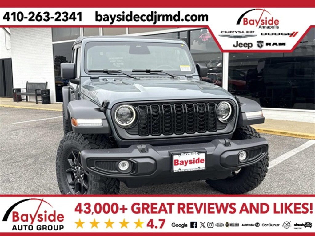 Bayside carries a full model lineup of Chrysler, Dodge, Jeep and RAM vehicles including the Jeep Grand Cherokee, Jeep Wrangler, Dodge Durango, Pacifica and RAM 1500. We invite you to shop around and compare our prices with other Chrysler, Dodge, Jeep and RAM dealerships in the Annapolis area. Let us know what you find, and let us give you our best price on the same model. We strive to earn your business and want you to be a Bayside Chrysler Dodge Jeep Ram customer for life! Visit us on the web at www.baysidecdjrmd.com. *Sale price includes all applicable rebates. Freight charge is not included. Taxes, tags and doc fee extra. Not all customers will qualify for all rebates. See dealer for details. Sale price includes all applicable rebates. Freight charge is not included. Taxes, tags and doc fee extra. Not all customers will qualify for all rebates. See dealer for details. Price includes: $1500 - 2026 National Stellantis Loyalty Retail Bonus Cash . Exp. 02/02/2026