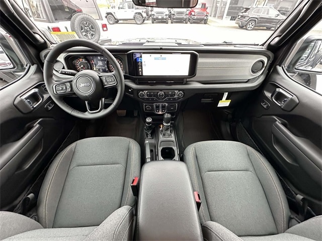 2026 Jeep Wrangler Sport S Sport S 2-Door Passive Entry, Front Door Locks, Advanced Brake Assist, Air Conditioning w/Auto Temperature Control, Air Filtering, Auto High Beam Headlamp Control, Automatic Headlamps, Blind Spot & Cross Path Detection, Cluster 7.0" TFT Color Display, Convenience Group, Corning Gorilla Glass, Deep Tint Sunscreen Windows, Emergency/Assistance Call, Enhanced Adaptive Cruise Control, Full Speed Forward Collision Warning Plus, Heated Front Seats, Heated Steering Wheel, Injection Molded Black Rear Bumper, LED Taillamps, ParkSense Rear Park Assist System, Power Heated Mirrors, Premium Wrapped Steering Wheel, Quick Order Package 22S Sport S, Remote Start System, Safety Group, Security Alarm, Sun Visors w/Illuminated Vanity Mirrors, Universal Garage Door Opener, Wheels: 17" x 7.5" Gray.