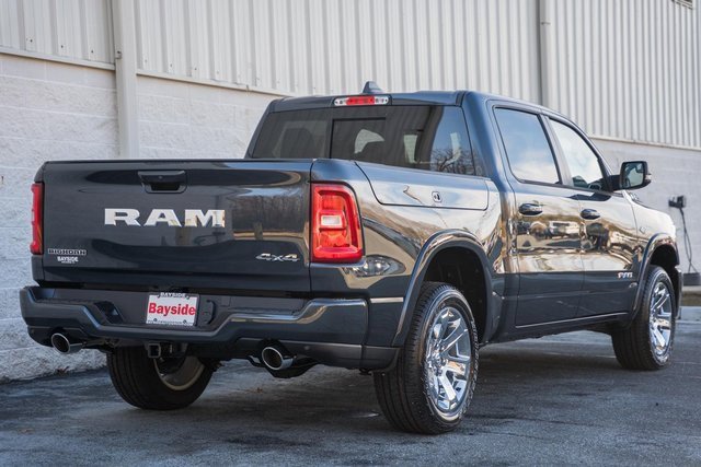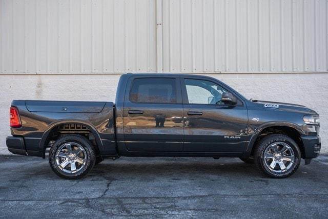 This Ram 1500 Big Horn Crew Cab stands out in Forged Blue Metallic with a bold Sport Appearance Package and chrome-clad 20-inch wheels. Power comes from the 5.7L V8 HEMI eTorque engine paired with an 8-speed automatic transmission, delivering strong performance and confident towing capability. The interior offers heated front seats, a heated steering wheel, power-adjustable pedals, rear in-floor storage, and a versatile Crew Cab layout. Advanced safety and convenience features like adaptive cruise control, blind-spot monitoring, front and rear park assist, and RamBox cargo management make this truck both capable and comfortable.