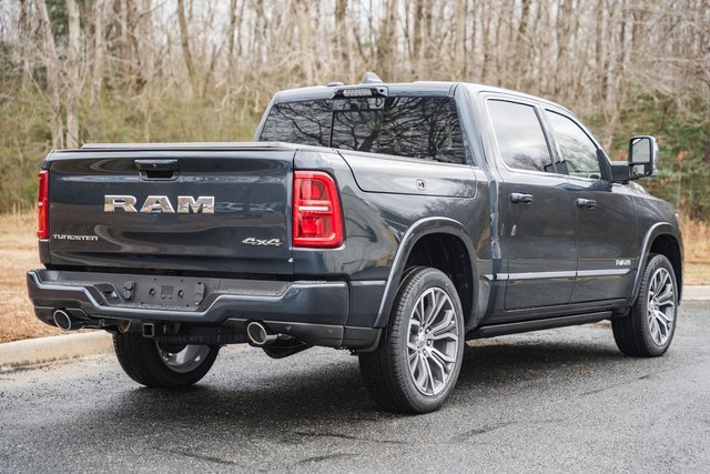 The 2026 RAM 1500 Tungsten Crew Cab 4x4 combines a 3.0L I6 Hurricane HO Twin Turbo engine with an 8-speed automatic transmission for a smooth, powerful drive, enhanced by advanced towing technologies and a 33-gallon fuel tank. Its luxurious interior boasts premium leather seats with massaging and 20-way adjustability, a dual-pane panoramic sunroof, a 14.4-inch Uconnect 5 touchscreen, a 12-inch digital cluster, head-up display, and a 23-speaker Klipsch sound system for an immersive experience. The exterior impresses with 22-inch polished wheels, LED projector headlamps, premium fog lamps, body-color accents, and active safety features including adaptive cruise control, evasive steering assist, and full-speed forward-collision warning plus.