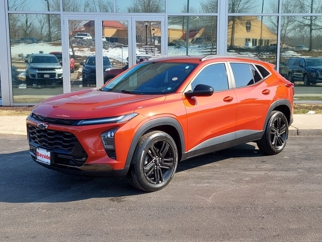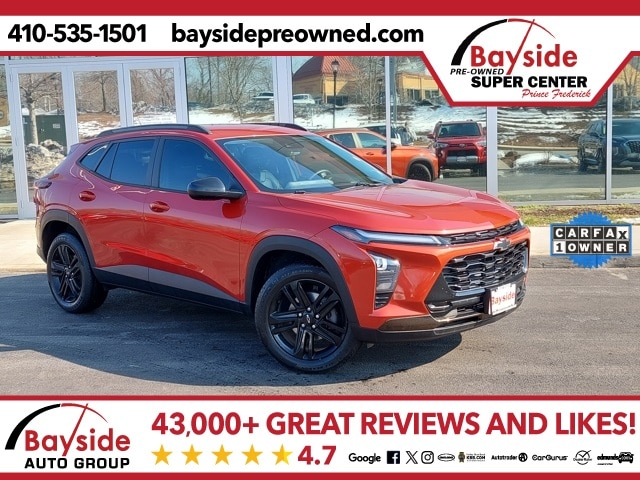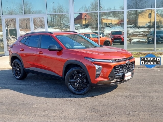 Experience the ultimate upgrade to your daily drive with this impeccably maintained 2024 Chevrolet Trax ACTIV, a top-tier compact SUV that combines rugged style with premium comfort. As a one-owner vehicle with a clean CarFax, this Trax offers total peace of mind and feels like it just rolled off the showroom floor, featuring the exclusive ACTIV trim's black 18-inch wheels, a unique grille, and sophisticated Evotex interior accents. It is the ideal companion for commuters, delivering a smooth and efficient ride with an impressive EPA-estimated 32 MPG on the highway, ensuring you spend more time on the road and less at the pump. The cabin is a high-tech sanctuary designed to take the stress out of traffic, equipped with a massive 11-inch HD touchscreen, wireless Apple CarPlay and Android Auto, and active noise cancellation for a remarkably quiet interior. On those early mornings, youâll appreciate the luxury of heated front seats, a heated steering wheel, and remote start, while the advanced Chevy Safety Assist suite provides a watchful eye on every journey. Whether you're navigating tight city streets or cruising the open highway, this Trax ACTIV delivers the perfect blend of modern versatility, fuel economy, and effortless style.